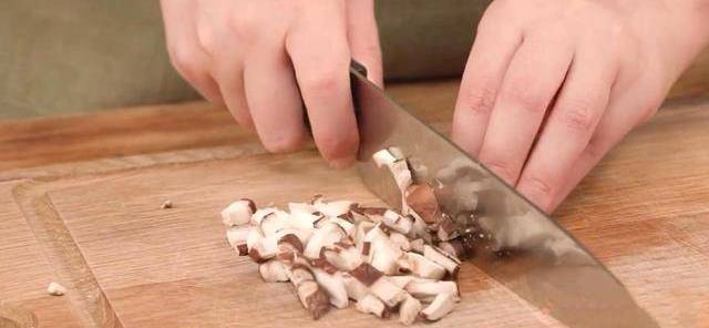 3、起鍋點火,鍋中放少許食用油,油熱後加入胡蘿卜丁和香菇丁翻炒出香味後,加一碗清水,大火煮開。
