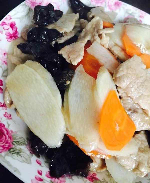 山藥炒肉片:需要準備肉片、山藥、菜椒、白醋、料酒鹽、雞精、生粉等食材。