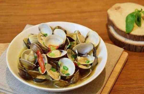 酒香蛤蜊:需要準備蛤蜊200g、薑3片、蒜2瓣、幹辣椒5個、葡萄酒50ml、植物油1小勺、黃油少許。