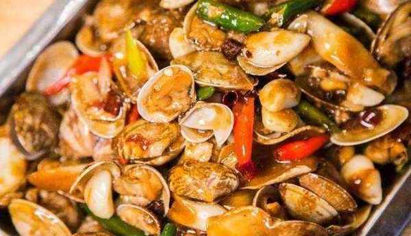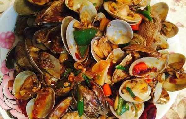 油爆蛤蜊:需要蛤蜊1000克、青椒20克、幹辣椒1個、蔥10克、薑10克、花生油20毫升、醋5毫升、生抽5毫升、白酒5毫升。