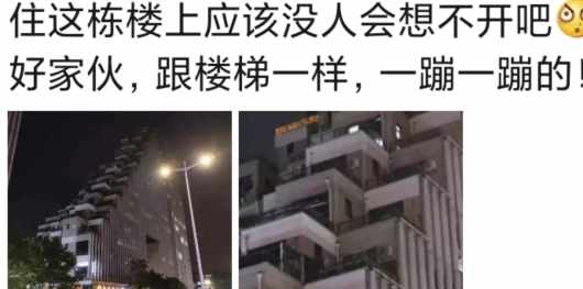 也不知道設計師是怎麼想的,是不是最初的目的也是想要挽救一個想不開的生命?不管最初的想法是什麼我是挺佩服設計師的腦洞,其實這樣的房子並不是特別好,更想知道一旦下雨的時候怎麼排水,水很有可能會堆積排不出去,樓層底下的人就要遭殃了,一層一層的像極了樓梯,真讓我有一種衝動想從最高層慢慢蹦到最底層,這樣一來鄰居之間串門就方便多了,又給老王提供了一個方便快捷的路啊!