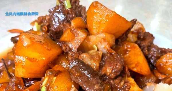 3 土豆去皮切成小段,放入鍋中,繼續燉煮15分鐘,收幹湯汁,出鍋撒點蔥花即可,溫潤滋補秋季必備菜肴。