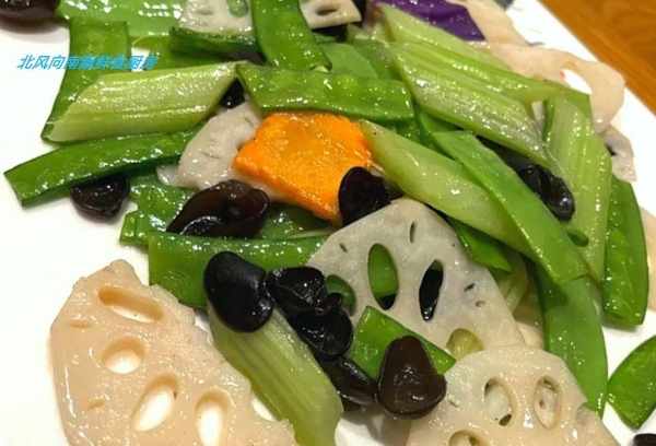 所需食材:蓮藕,芹菜,木耳,荷蘭豆,蒜,鹽,雞精,生抽,蠔油