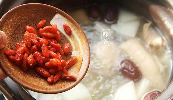 7、最後5分鐘時放入泡好的枸杞,枸杞要後放,枸杞煮久瞭會丟失營養的;