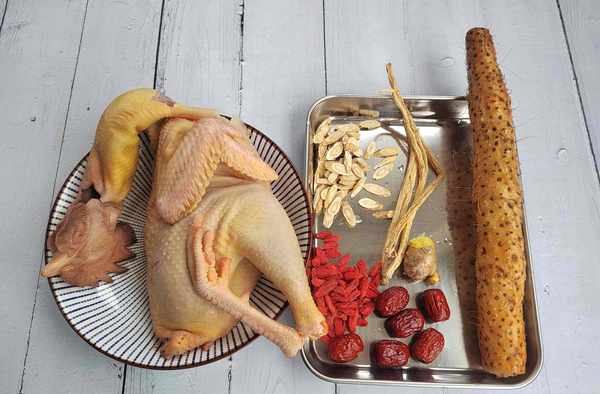 主料:公雞半邊;山藥1根;黨參10克;黃芪10克;枸杞10克;紅棗6顆。