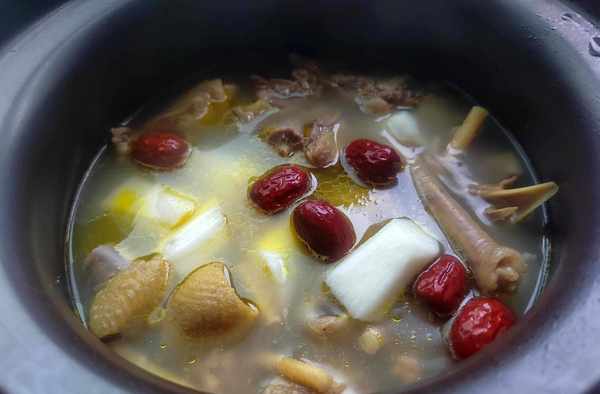 第四步:放入切好的山藥和紅棗,繼續燉20分鐘左右。