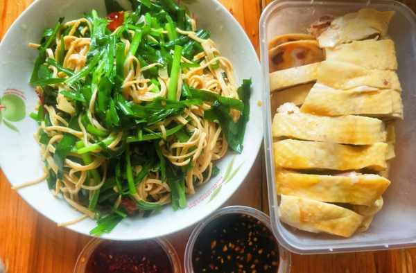 食材:韭菜、千張(豆芽)、 大蒜、食鹽、蠔油、雞精