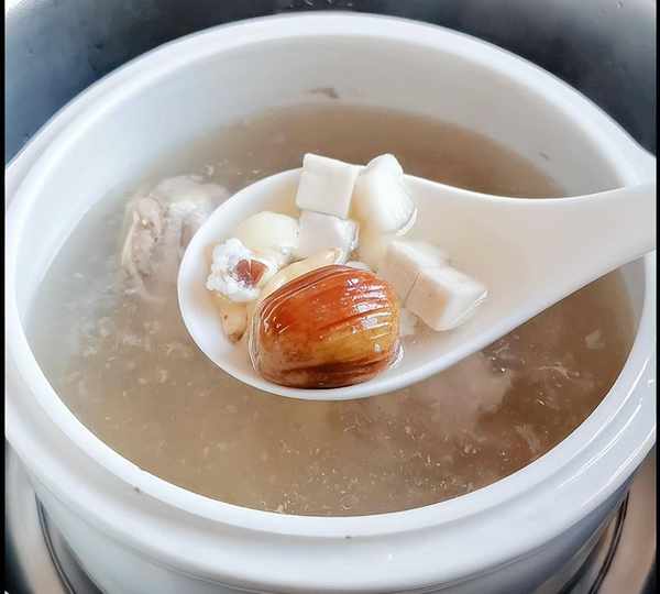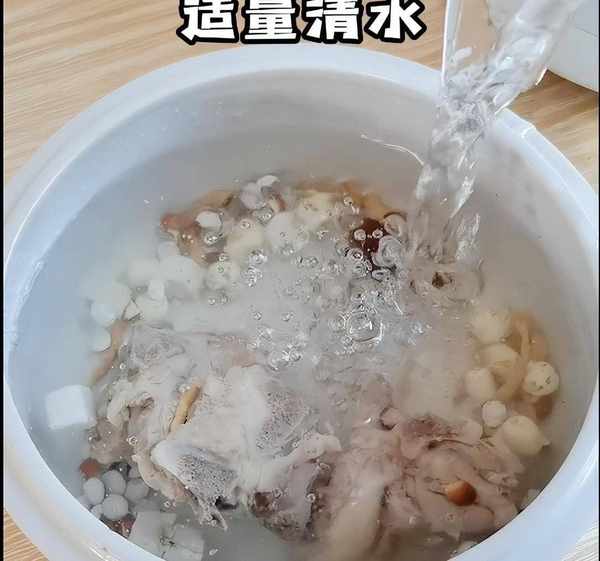 食材清單:太子參10克,蓮子15克,茯苓15克,芡實10克,蜜棗1顆,瘦肉或豬骨100克,食鹽適量