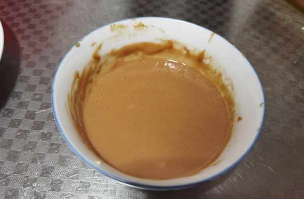 1.準備一個小碗兒裝入1.5勺麻醬然後加入海鮮醬油,陳醋,香油,麻油和鹽攪拌均勻,如果比較稠,可適當加些清水最後調成稀稠濃度適中的程度