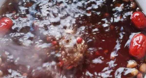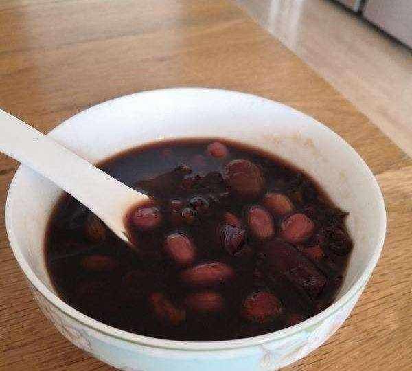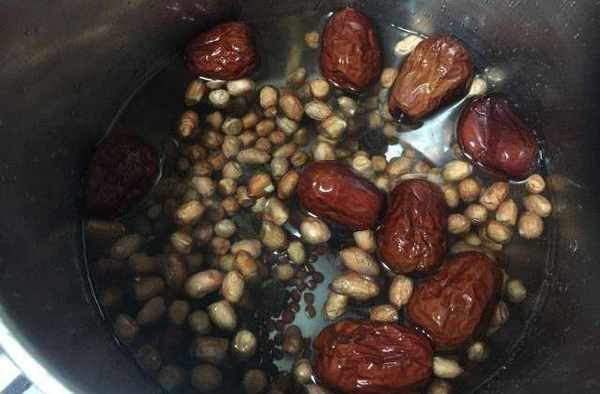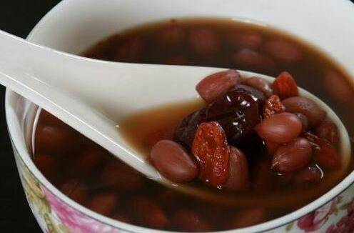 食材:紅豆80克、紅皮花生80克、枸杞20克、紅棗10個、紅糖適量、清水適量