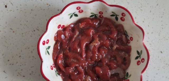 1、把買來的牛肉洗幹凈後切成薄片,然後再加入1勺料酒、1勺生抽、1勺淀粉和少量食用油用手爪勻,醃制10分鐘左右。
