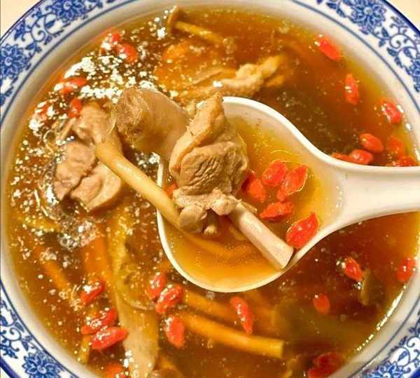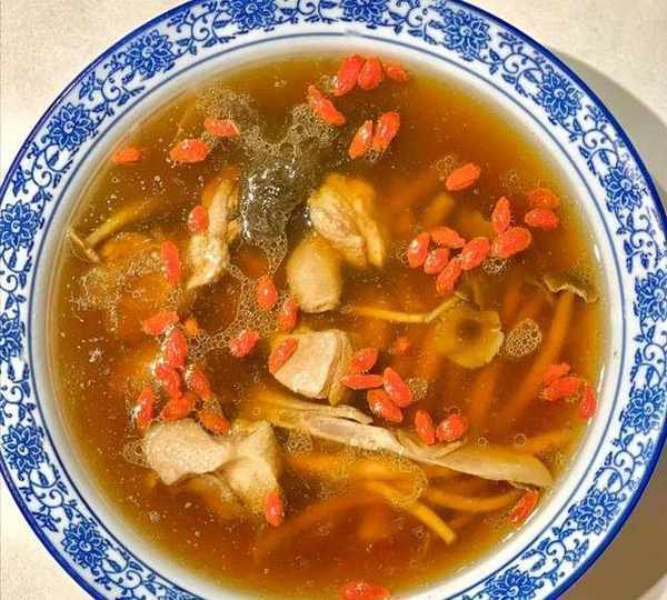 3.加入適量清水,沒過食材即可,中小火慢燉3小時,再加入枸杞子燜3分鐘,再加入食鹽調味即可出鍋開喝。