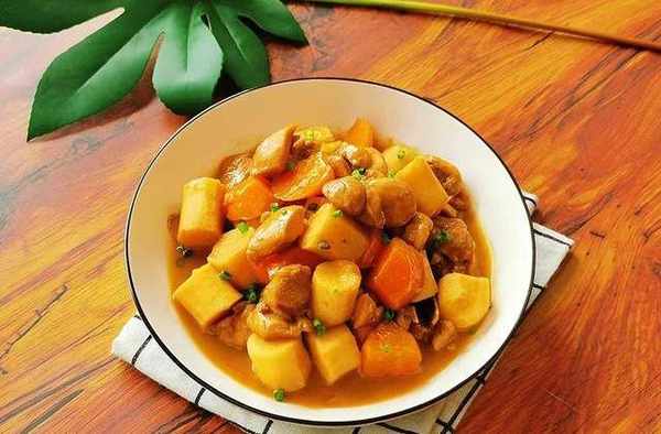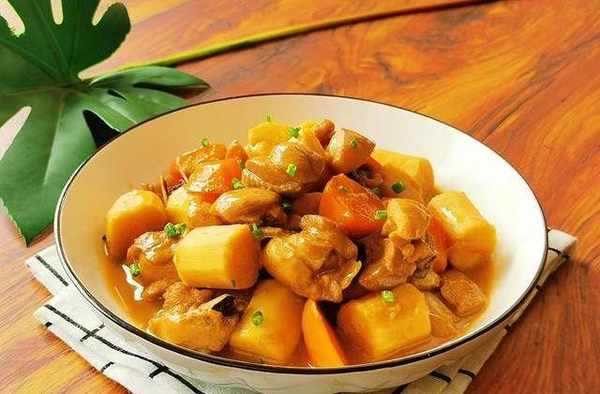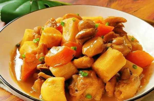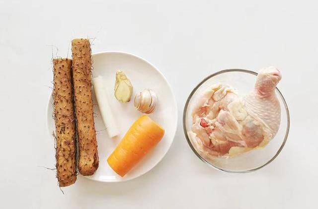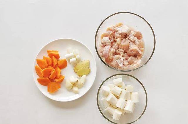 食材:山藥300克,雞腿肉400克,胡蘿卜200克。