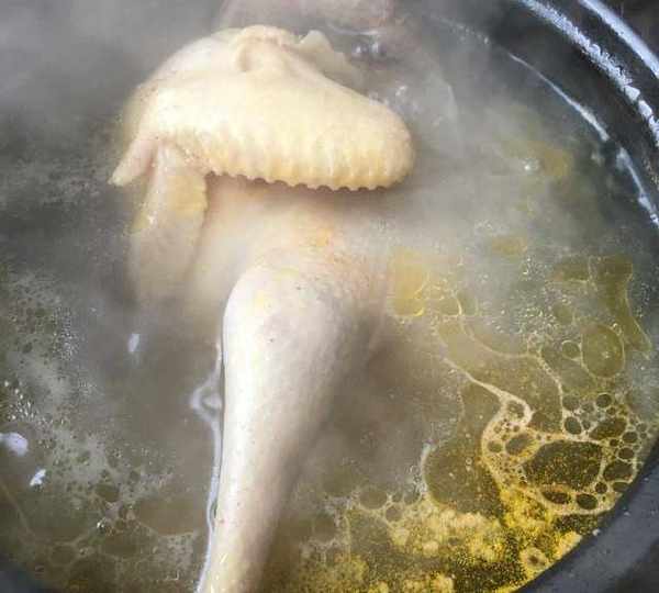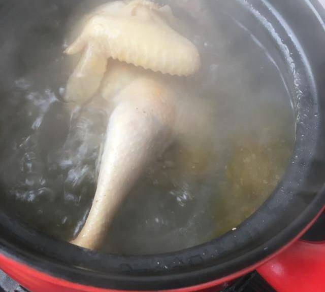 第9步、水量加到沒過母雞,大火燒開,改中小火。