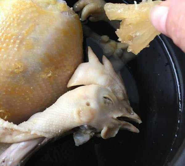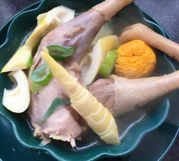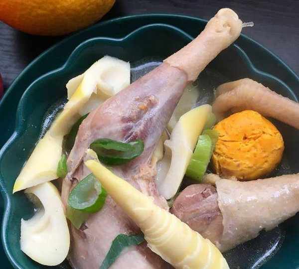 原料:母雞、春筍、純凈水、食鹽、酒菠蘿、蔥花。