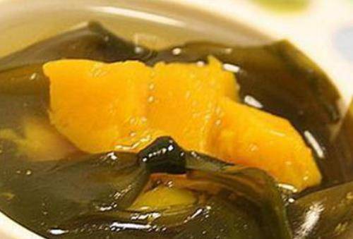 制作步驟:南瓜直接去皮去籽,然後清洗並切制成小塊,海帶的話揉搓沖洗,浸泡一下切成小段,並將水分稍微擰幹,起鍋燒水適量,水開之後放入所有的食材,然後切換成小火去慢慢燉煮,大概三小時左右湯品就完成瞭,最後記得稍微撒點食鹽哦!