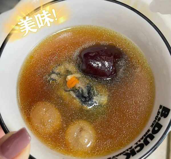 4調味,放入適量鹽就可以瞭,湯裡面有桂圓紅棗,所以會甜甜的,放少許鹽調個味就很好喝瞭,最後可以按需再燉一會兒,就可以開喝啦