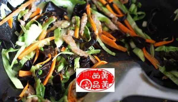 配料:裡脊肉40克,木耳10克,卷心菜50克,胡蘿卜半根,鹽一茶匙、醋兩茶匙、白胡椒粉適量,雞蛋一個,淀粉適量,料酒半茶匙,芝麻油3滴,香蔥半顆。