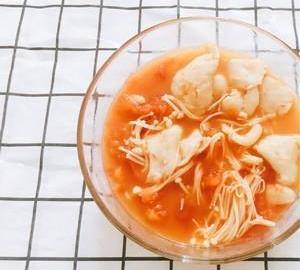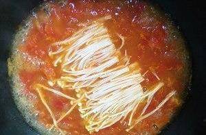煮至湯色變紅放入金針菇