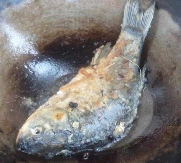 第1步、鯽魚去腸去鱗去腮洗幹凈。鍋燒熱,加花椒,加油將花椒炸香,鯽魚裹上面粉入鍋煎後盛出。