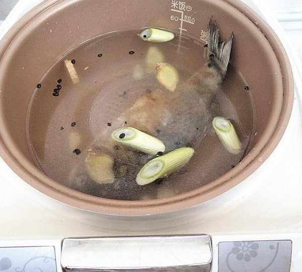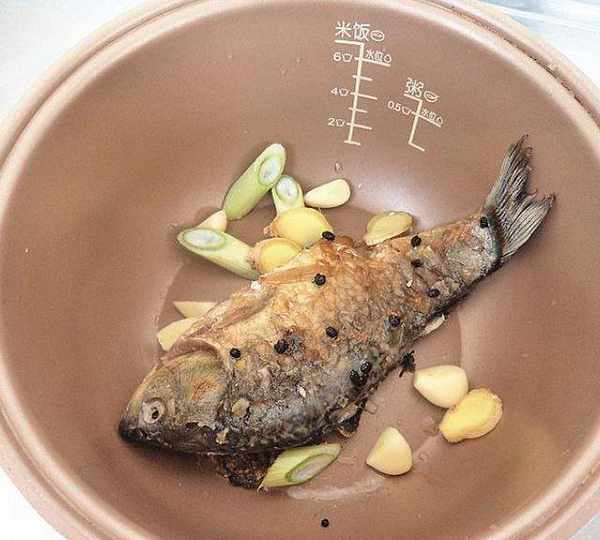 第2步、好的魚放到電飯煲內膽,加蔥薑蒜。