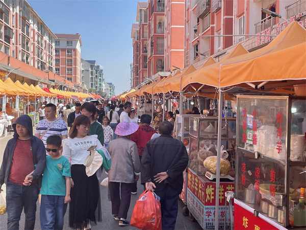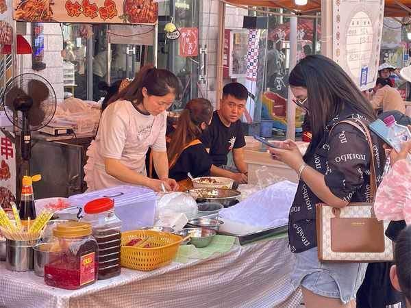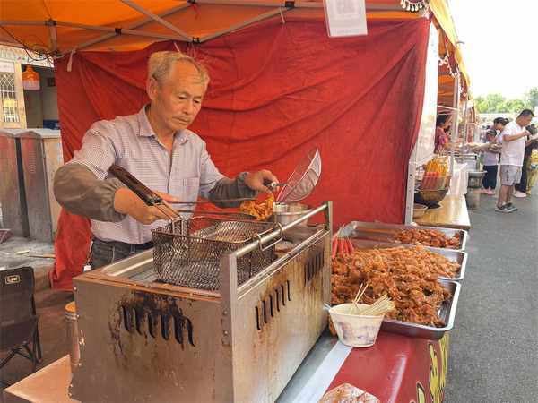 在美食一條街,油炸粑、裹卷、烤肉、冰漿……各種特色美食吸引市民駐足品嘗購買,享受舌尖上的饕餮盛宴,不少群眾感嘆,再次感受到瞭久違的熱鬧和“煙火氣”。