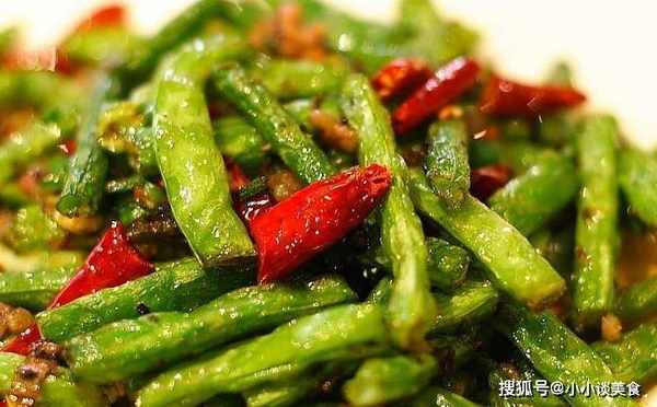 2、鍋內加少許油,放入幹辣椒、刺灰和藥明,然後倒入炒好的四季豆,加生抽、花椒醬,加雞粉炒熟。甚至在啟動鍋爐之前。