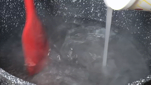 2.鍋中加入2.5升的清水煮開,倒入白涼粉水。