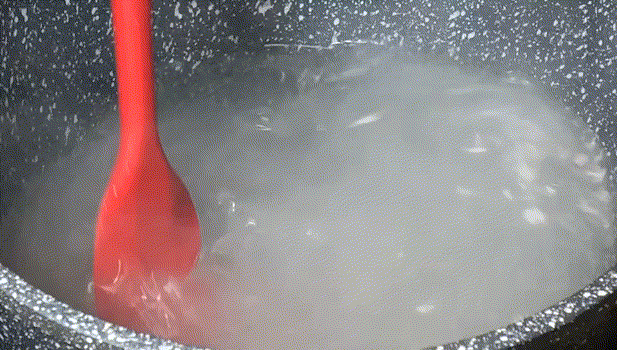 4.開大火並一直攪拌,煮至沸騰即可關火。