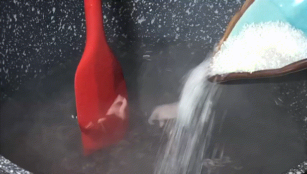 7.繼續把白涼粉水填滿容器。冷卻至凝結為清澈透明的膏狀。