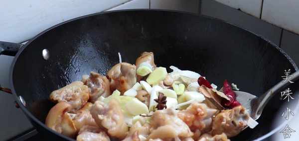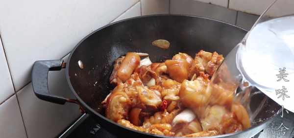 炒香後加入水,水的量要剛好淹沒豬蹄就行,蓋上鍋蓋中小火燉大約1個小時