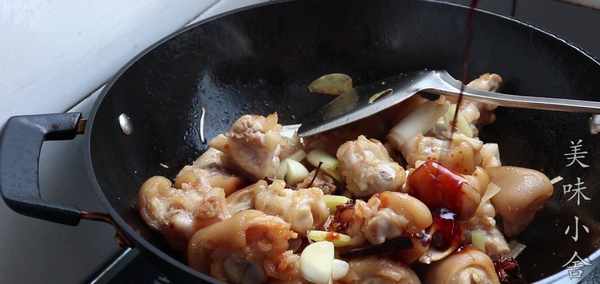 然後把豬蹄倒入鍋裡,迅速翻炒至豬蹄完全裹上糖色