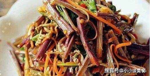 原料:蕨菜500克,蒜片25克,精鹽4克,花椒2克,幹辣椒20克,香油25克,芝麻20克