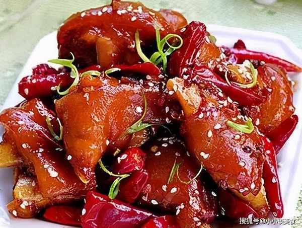9.加入醃制好的豬手翻炒,不斷攪拌,直至均勻裹上糖。