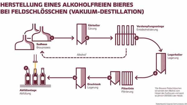 無酒精啤酒通常有人為中止發酵過程和真空蒸餾蒸發酒精兩種方法制取。後續對啤酒進行脫醇處理,並在啤酒中加入薄荷或接骨木花等香料。根據德國營養學會(DGE)的說法,無酒精啤酒味道很好,熱量和糖分也低於傳統啤酒。