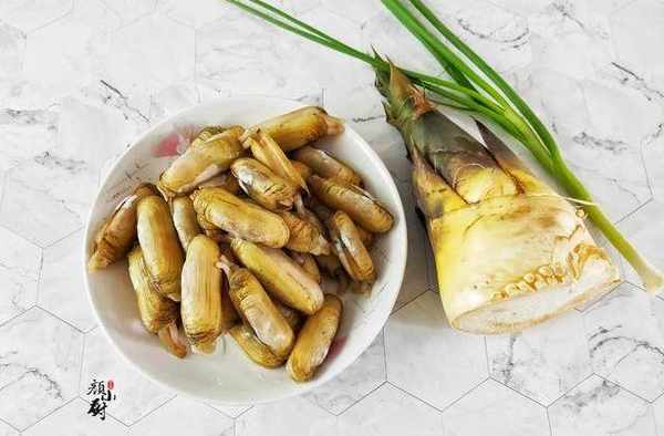 食材:綠竹筍一根,蟶子300克,蔥一棵,鹽一勺。