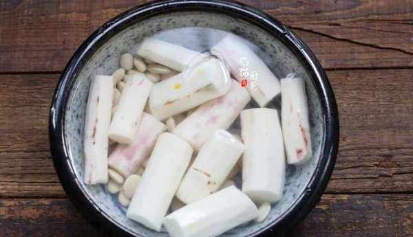 2.鐵棍淮山組織較細膩,適用於煲湯也不容易煮爛,削去外皮後為瞭防止它容易氧化發黑,和白扁豆一樣放入清水中,稍微浸泡一下。