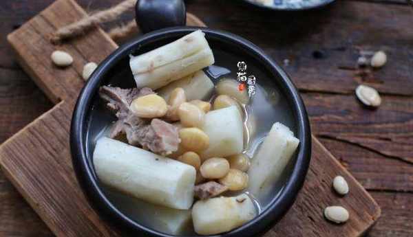 食材:鐵棍淮山1根,馬蹄5-6個,白扁豆一把(約50克),豬脛骨250克,清水適量,鹽少許。