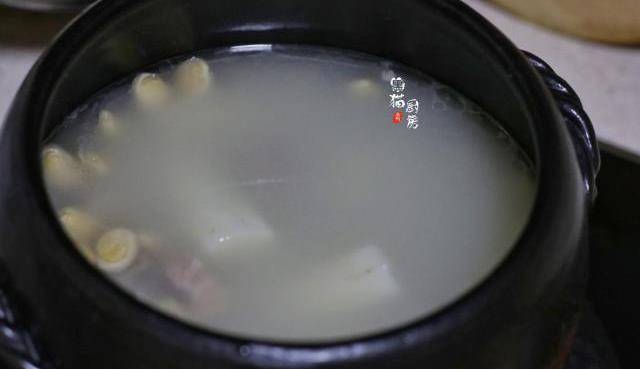 5.最後你會發現原本的清湯漸漸變成瞭白色,加少許鹽調味,煮開後關火即可。