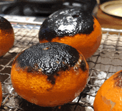 做法:灶開小中火,將橘子放上面燒,來回擺動,待橘子皮一邊變黑立即換另一邊烤,橘子全部變黑,不能烤焦哦,將橘子放在碗裡待變溫後,趁溫剝掉橘皮吃橘肉。