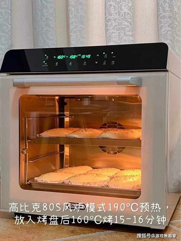 高比克80s風平一體烤箱,風爐模式160℃,15-16分鐘。
