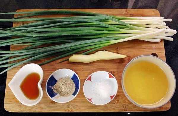 食材:青蔥200g、老薑30g、植物油150毫升、鹽2小匙、白胡椒粉2小匙、芝麻香油2小匙