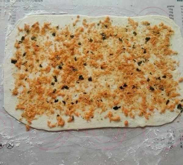原料:金龍魚雪花小麥粉、細砂糖、玉米油、酵母、純凈水、沙拉醬、肉松。