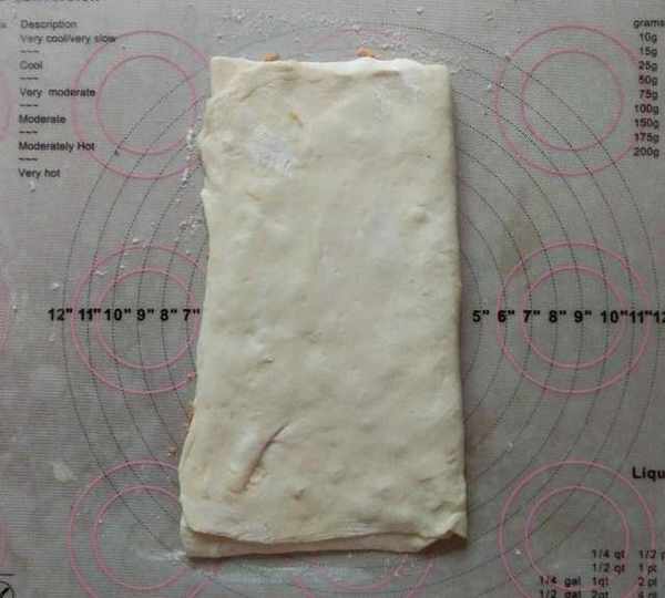 第5步、矽膠墊上撒適量幹粉,用搟面杖把面團搟成長方形的面片。