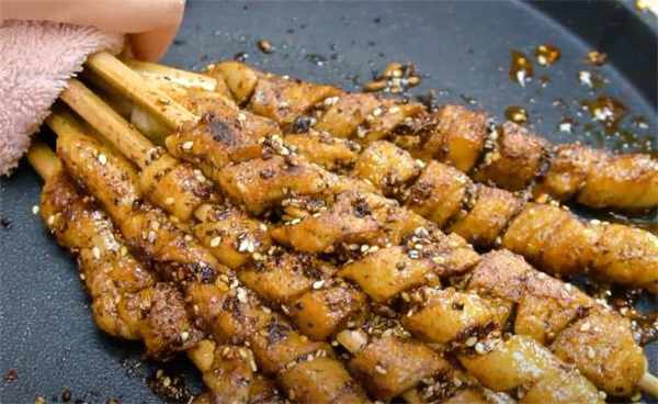 11.在傢那麼長時間,老早就想吃燒烤瞭,今天用半斤的谷朊粉,大概做瞭有三十多串烤面筋,超級好吃,大傢在做的時候,一定要小火,先把這個面筋煮熟,這樣刷上醬料,直接在電餅鐺裡烙熟就行瞭。