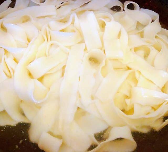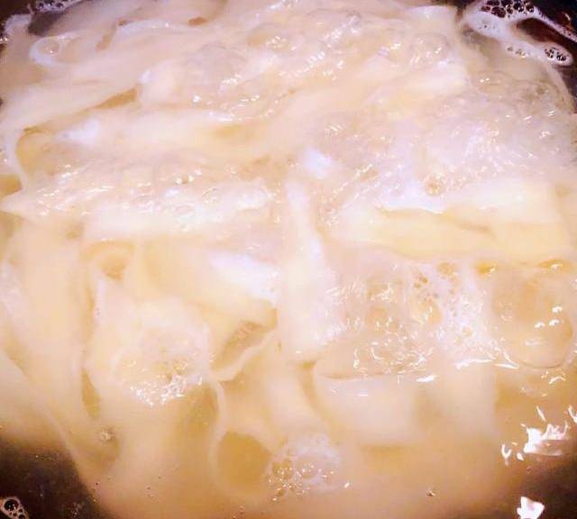第1步、鍋中燒開水放入面條大火煮至面條沒有硬心完全熟透但不軟爛即可。