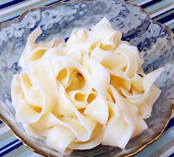 第2步、煮好的面條立即放入涼白開水中過涼後瀝幹水份備用。