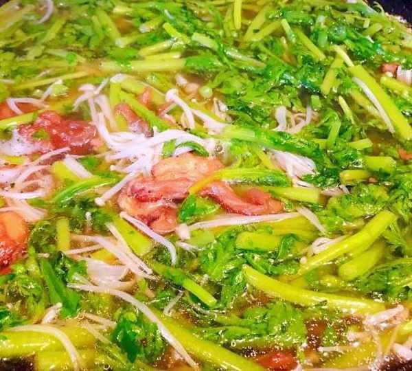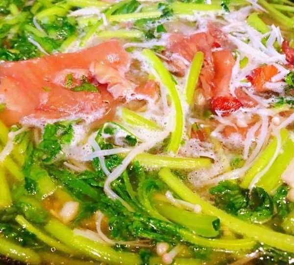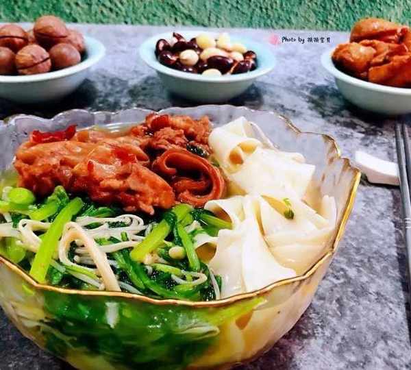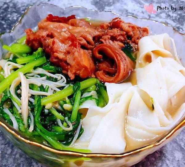 原料:牛雜、茼蒿、金針菇、面條、鹽、味精。