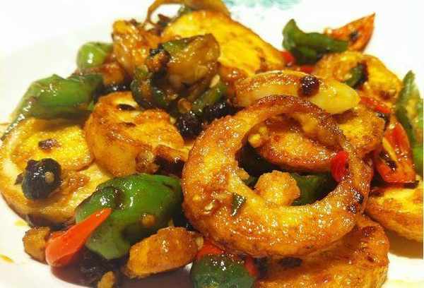 鍋中留底油,加入蒜末和青紅辣椒炒香。加入老幹媽、蛋液翻炒,加入醬油、花椒粒即可。