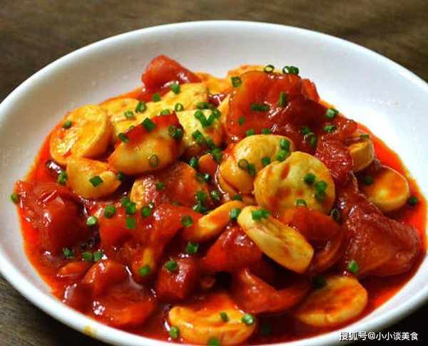 1.首先,將豆腐玉子切成約1厘米的薄片,去掉番茄的蒂,放在爐子上稍微切碎。
